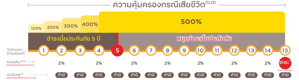 - - ระยะเวลาการชำระเบี้ย 10 ปี ให้ความคุ้มครองถึงอายุ 85 ปี